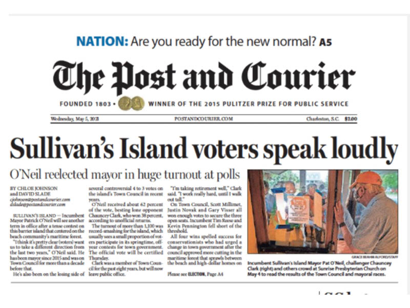 On May 4, the voters of Sullivan’s Island came out in record-breaking numbers to voice their support for saving the maritime forest and elect a pro-conservation slate of candidates to Town Council. This is an important first step, but more urgent work remains!